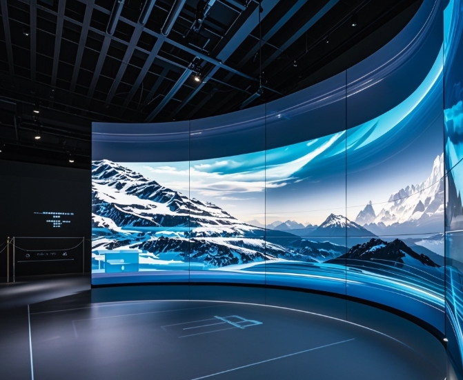 環(huán)形曲面LED顯示屏由多個LED模塊組成,通過電路控制實現(xiàn)圖像顯示。其獨特的曲面結(jié)構(gòu)帶來了更具沉浸感的視覺體驗,但也對光學(xué)設(shè)計提出了更高要求。